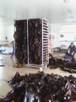 鮮海帶長度約1.5m~3m,寬度約20cm~45cm,表面特別粘滑,兩片海帶粘連在一起,幾乎沒法烘干和曬干,所以天然海帶烘干采取何種通風方式,海帶是選擇平鋪還是懸掛?就顯得極為關鍵。