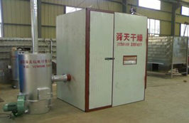 HX-N系列果蔬烘干機采用的熱源是熱風爐提供的純凈熱風或電熱管加熱產生的純凈熱風兩種,熱風溫度可調可控,在熱風進入烘干機后,由箱內高溫高濕軸流風機在箱內穿透物料并循環,循環風向由儀表自動控制正反轉,時間可隨意設定,一般30分鐘以上轉換風向一次,由烘干機中部百葉窗式排潮口自然排潮。這樣各層物料能均勻快速烘干。